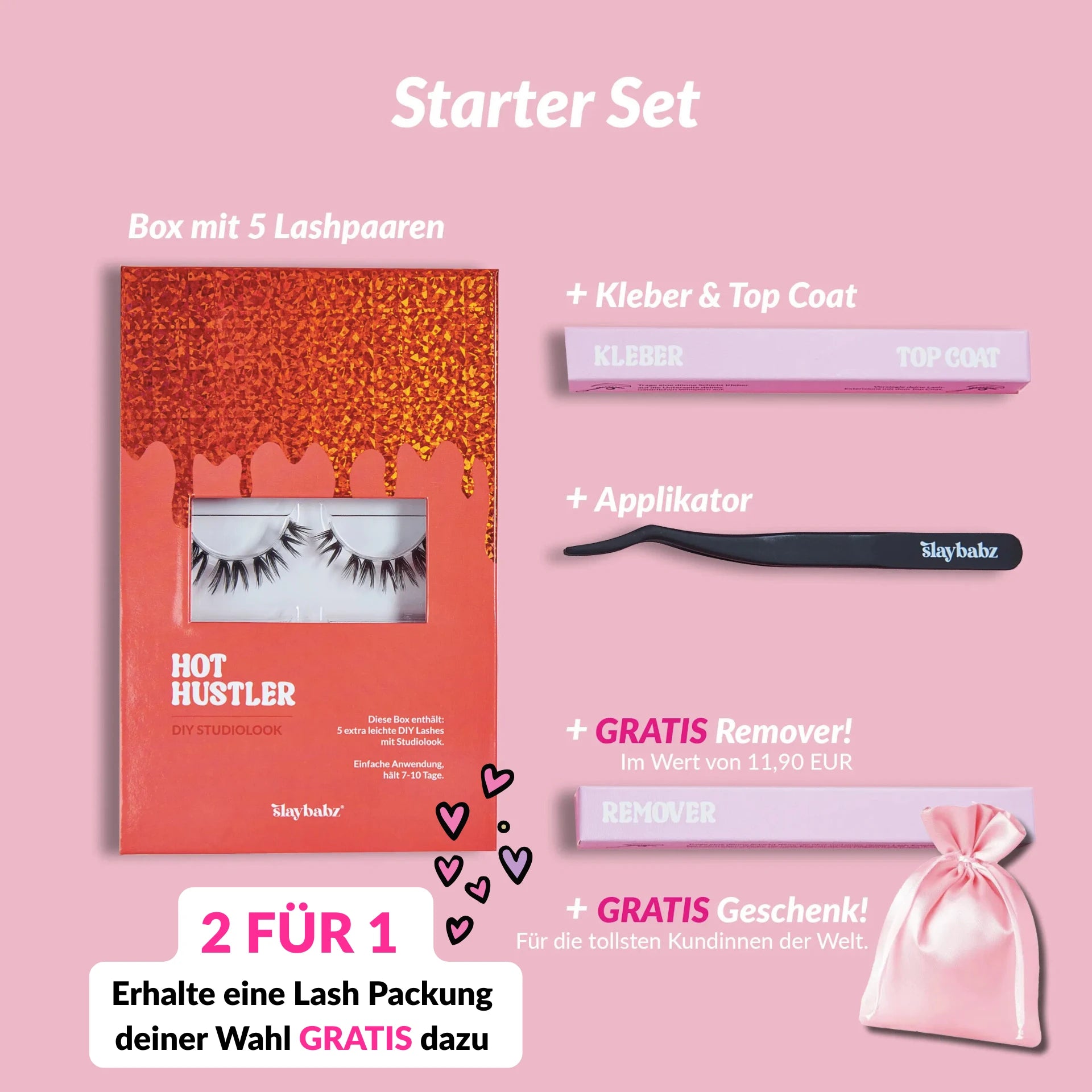 Bei SlayBabz steht deine Zufriedenheit an erster Stelle. Als Neukunde kannst du unsere Lashes risikofrei testen: Solltest du innerhalb von 30 Tagen nicht zufrieden sein, melde dich einfach bei uns – wir finden gemeinsam eine Lösung, z. B. Ersatz, einen Gutschein oder eine andere Möglichkeit.
